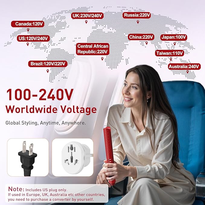 - Note for International Use: This hair straightener supports dual voltage (110–240V) for worldwide use, but it comes with a US plug. If you're using it in Europe or other regions, please use a suitable plug adapter.