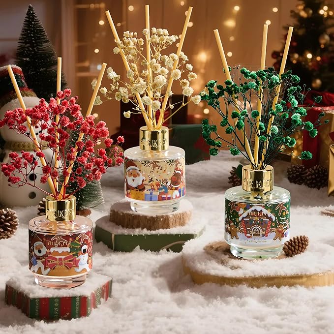 Airkeep Reed Diffuser Set of 3,Balsam & Cedar Balsam & Fir Christmas Spice Oil Reed Diffusers for Bedroom Living Room Office Aromatherapy Oil Reed Diffuser for Gift 50ml x 3