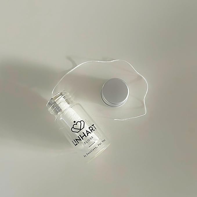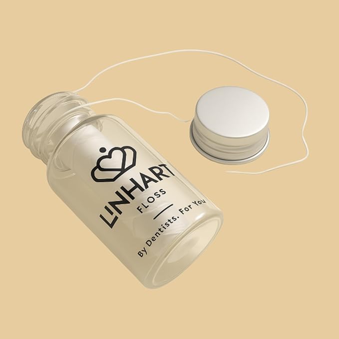 Linhart Dental Microfiber Dental Floss – 25m Eco Refillable Glass Bottle – Mint & Xylitol – Gentle, Non-Tearing, Dentist Designed – Sustainable, Vegan, BPA-Free, Freshens Breath Naturally