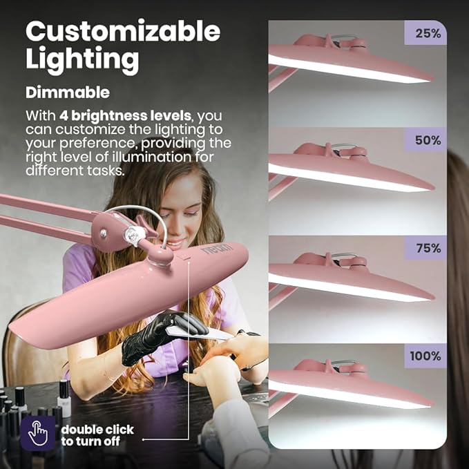 - Professional Lighting – This desk light is designed for professionals, hobbyists, and nail technicians, featuring a 20-inch lamp head with 117 LED SMD lights to illuminate a wide area. Ideal as a clamp-on desk lamp or desk lamp for office use, it provides excellent lighting for extensive work surfaces and tasks like reading, drafting, crafting, painting, sewing, detailed work, and nail art, ensuring every detail is clearly visible and well-lit.