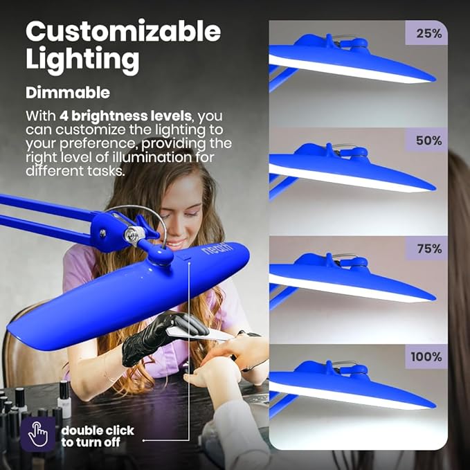 - Professional Lighting – This desk light is designed for professionals, hobbyists, and nail technicians, featuring a 20-inch lamp head with 117 LED SMD lights to illuminate a wide area. Ideal as a clamp-on desk lamp or desk lamp for office use, it provides excellent lighting for extensive work surfaces and tasks like reading, drafting, crafting, painting, sewing, detailed work, and nail art, ensuring every detail is clearly visible and well-lit.