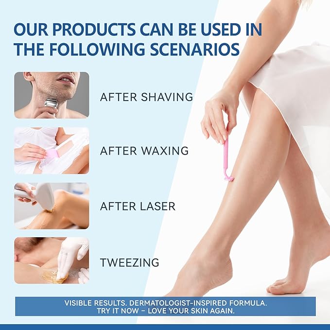 - Perfect for post-shave care, waxing recovery, and daily skincare routines, this versatile treatment works on all body areas—face, neck, underarms, and bikini zone—for both men and women.