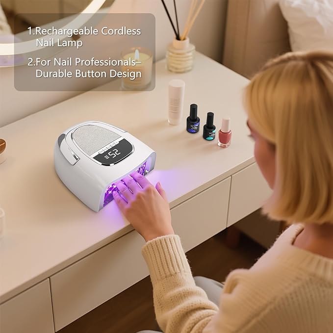 - 【Cordless Freedom, Salon Power】 Cut the cords, not the performance! This salon-grade wireless nail lamp features a large-capacity 15,600mAh rechargeable battery that lasts up to 10–12 hours on a single 3-hour charge. Perfect for mobile nail techs, home use, or travel — enjoy salon power anywhere you go.