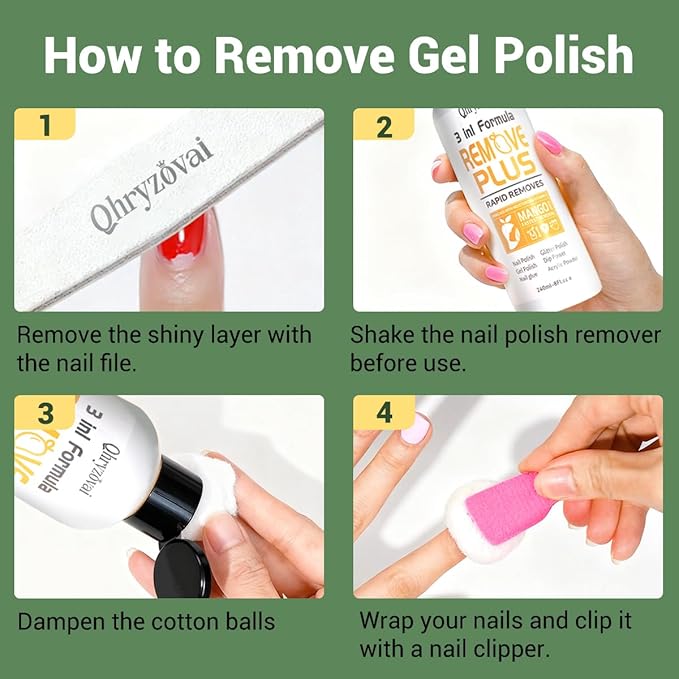 - Qhryzoval’s Best-in-Class Service: We value your satisfaction above all! If you have any questions or issues with our professional nail polish remover, reach out to us via email—we offer replacement or refund services anytime. Shop with confidence, knowing we’re here to support your nail care journey. Add this must-have to your nail care supplies today—effortless removal, nourished nails, and peace of mind, all in one bottle!