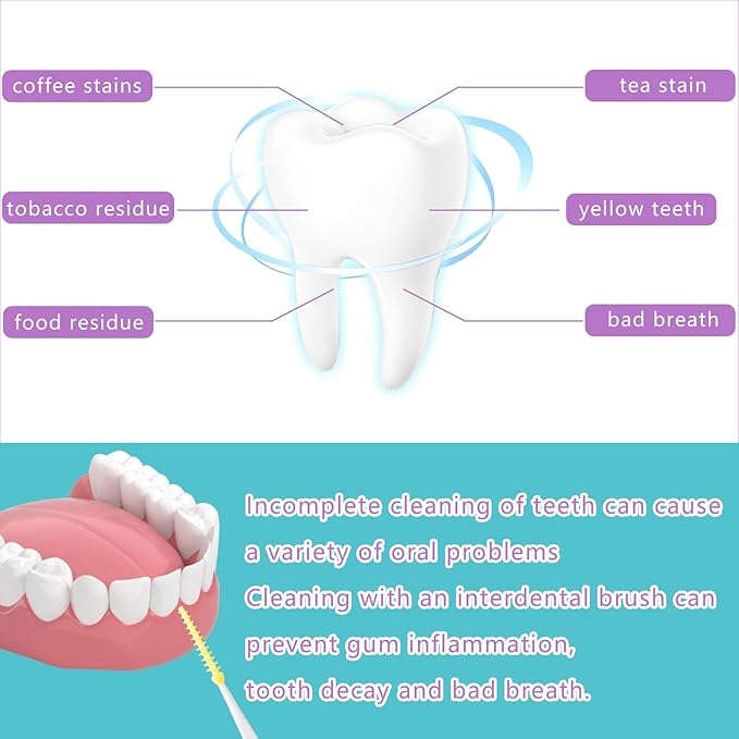 - 【Dual-purpose Design】: One end of the teeth cleaning tools is made of soft silicone, which can be easily bent, the curved design makes it easier for you to clean your mouth; The longer handle provides better touch and handling. The end can also be used as a toothpick to clean your teeth.