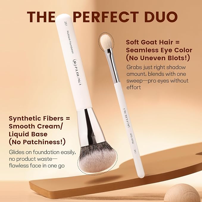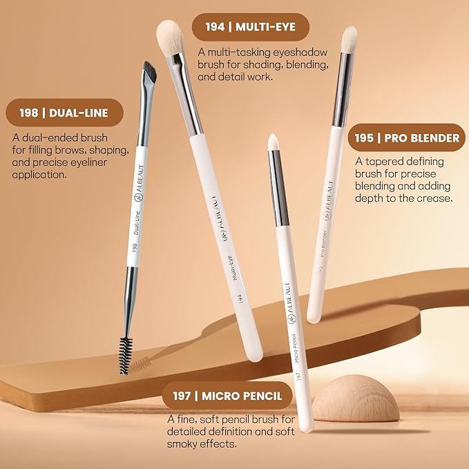 - Long-lasting & clean: Simple design, classic appeal, eco-conscious manufacturing Ergonomic wooden handle of Albeaut makeup brishes fits perfectly in hand for precise, comfortable use. The soft bristles of this brushes set feel gentle on skin while delivering a lightweight, natural finish. Blend makeup seamlessly in seconds — no streaks, no patches, just smooth, airbrushed-looking results with minimal effort