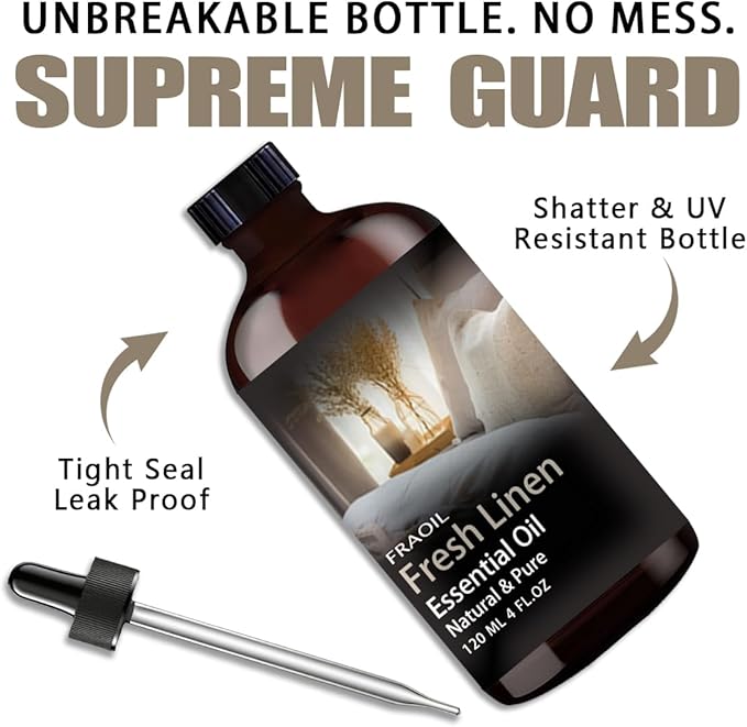 - Premium Fresh Linen Fragrance Oil: Enjoy the refreshing and soothing aroma of Fresh Linen Fragrance Oil, FRAOIL Fresh Linen Fragrance Oil is an upgraded and enhanced formula that has been sorted and bottled through a rigorous and standardized process to ensure the highest quality ingredients. Whether you use it for home aromatherapy or perfumery, this Fresh Linen Fragrance Oil will bring you a relaxing atmosphere.