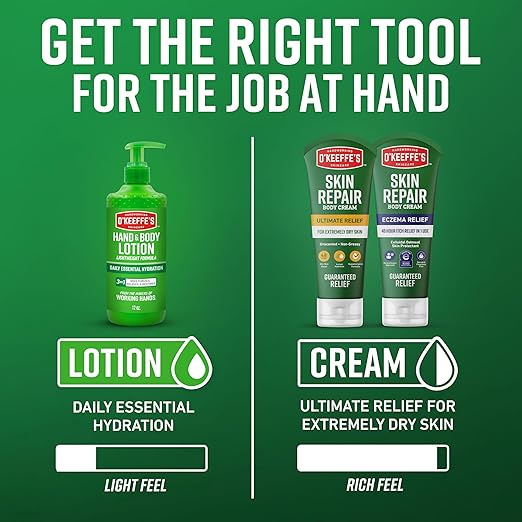- Targets Eczema Relief: Includes (1) 7 oz. tube of O’Keeffe’s Skin Repair Eczema Relief Body Cream to soothe dry, itchy, irritated skin caused by eczema flare-ups