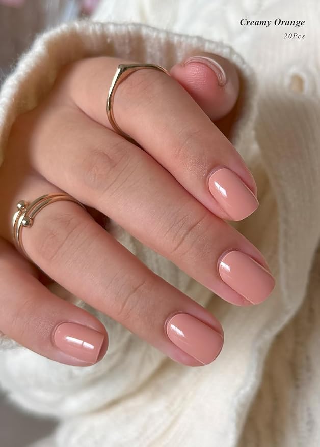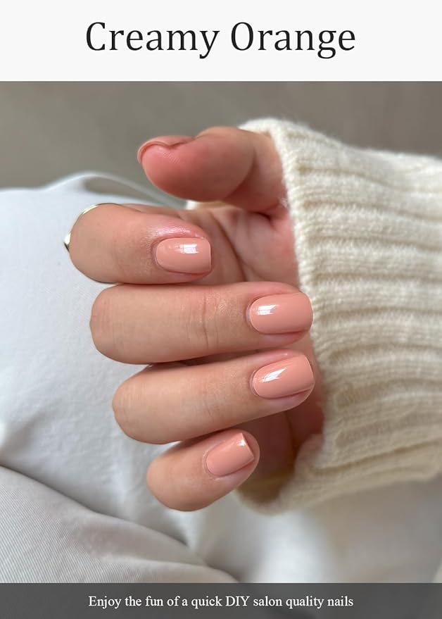 Semi Cured Gel Nail Strips (Creamy Orange), Fall, 20 Pcs Gel Nail Wraps, Stickers, UV Light Required, Salon Quality