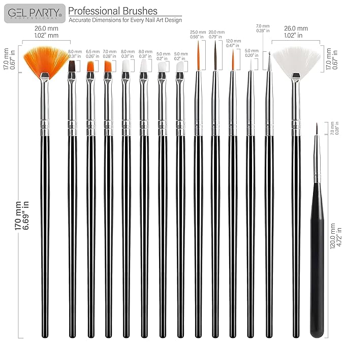 - Premium 32-Piece Nail Art Brush Set – Includes 32 different sizes and styles from fine liners to fan brushes, ideal for everything from detailed 3D sculpting to bold gel and acrylic coverage.