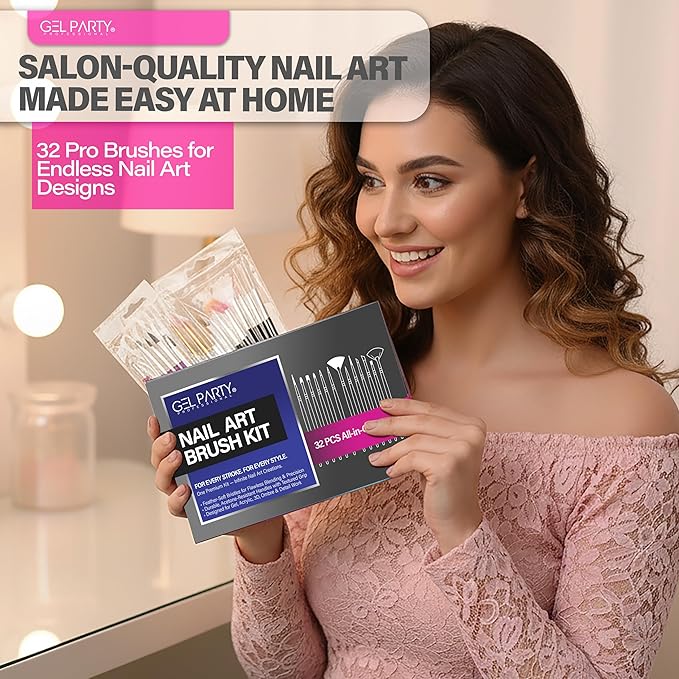 GELPARTY Nail Art Brush Kit – 32 PCS Professional Nail Brushes for Acrylic, Gel, UV/LED, Ombre & 3D Design | All-in-One Manicure Tool Set for Salon & DIY