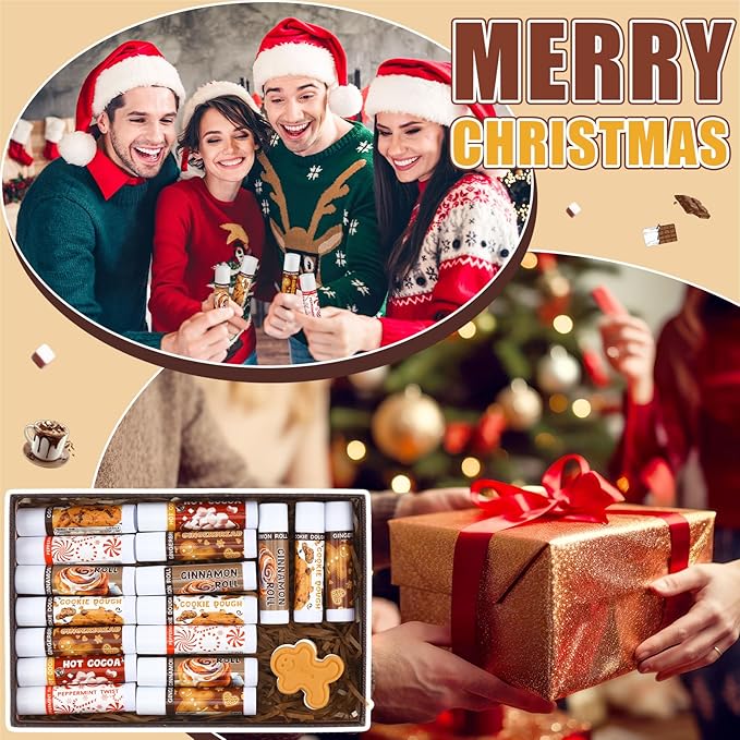 - Christmas Flavor Lip Balms: this holiday flavor lip balms is a must-have for anyone who loves the cozy, comforting scent of winter; Each tube delivers a smooth, hydrating experience with the delicious aroma of holiday food, making it feel like you're indulging in a seasonal treat without the calories; The formula provides long-lasting moisture, leaving lips feeling soft and nourished