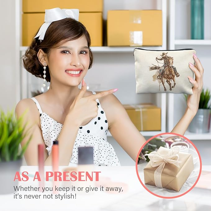 Western Cowboy Bag for Women, Western Gifts for Women, Rodeo Cowboy Cosmetic Bag for Purse, Cowgirl Gifts Makeup Zipper Pouch