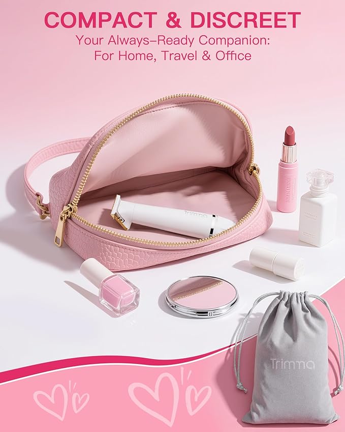 - COMPACT & DISCREET: Trimma's portable rechargeable facial hair removal for women features a sleek, slim design that fits comfortably in your hand and slips easily into your purse or travel bag. Powered by a 350mAh rechargeable lithium-ion battery, it fully charges in just 1.5 hours and provides up to 1 hour of continuous use - making it the perfect companion for home, travel, and business trips.