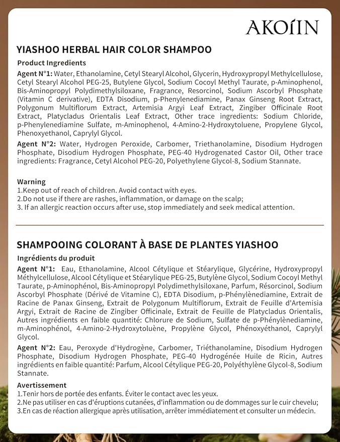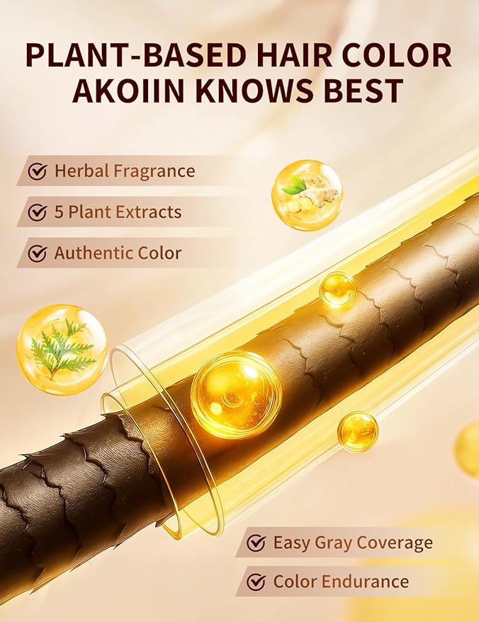 - 5. Better Experience. AKOIIN dark brown hair dye pays great attention to the dyeing effect and user experience. With a light herbal fragrance, natural and full - bodied color, and a low - irritation, non - sticky formula, it can better protect the scalp and hair of middle - aged and elderly people. The detailed usage instructions, combined with the dyeing tool kit, make it easy for you to get started and enjoy the fun of dyeing hair.