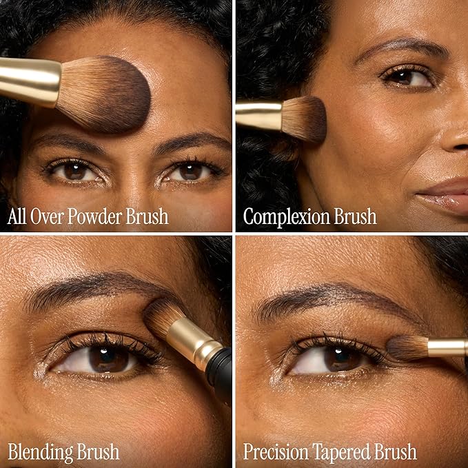 - HOW TO USE: Swap brush heads to suit your look. Use the Powder Brush for all-over coverage, the Complexion Brush for blush or foundation, the Blending Brush for shadow, and the Precision Tapered Brush for defining your lids.