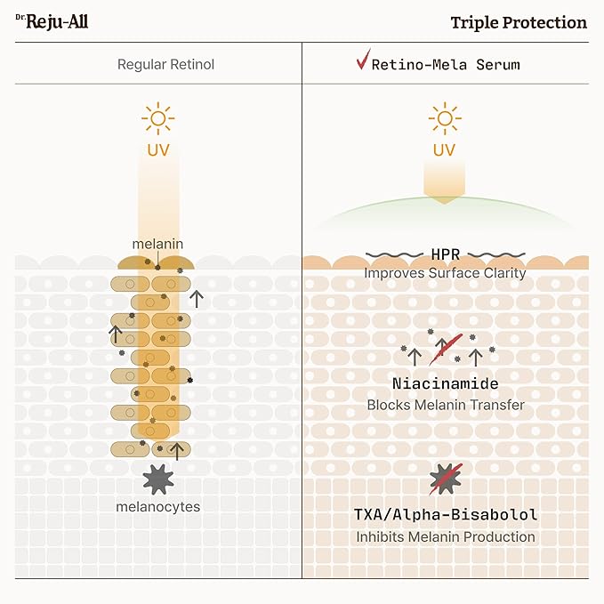 Dr. Reju-All Advanced Retino-Mela Serum – HPR Retinol Serum for Face – Anti-Aging, Pore Minimizer, Next-Gen Korean Skin care – Gentle & Beginner-Friendly – Niacinamide 10% & TXA 4% – 1 Fl Oz
