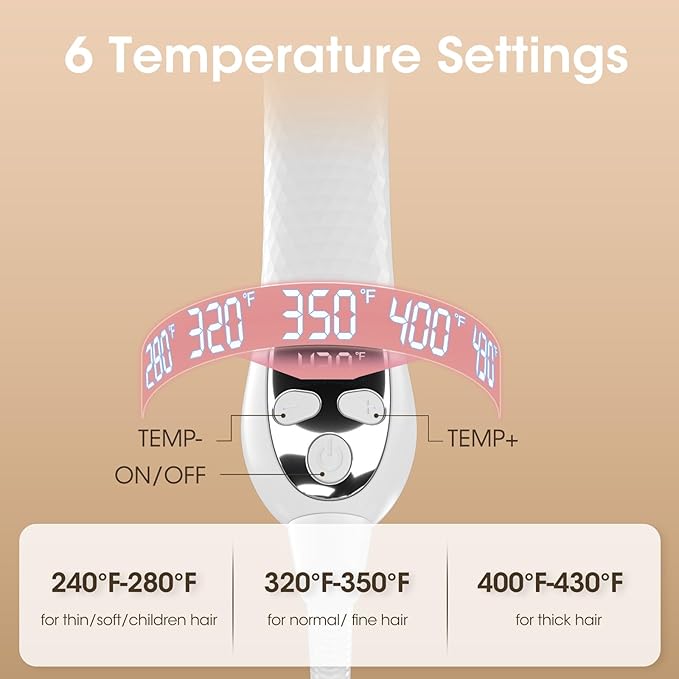 - 5 Adjustable Temperature Settings – Customize heat from 160°F to 400°F (70°C–200°C) for all hair types—gentle on fine hair, strong for thick hair.