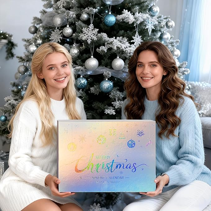 - Stunning Presentation & Ideal Holiday Gift: Make her holiday season shine with a luxurious beauty advent calendar designed to surprise and delight your dear ones. The holographic silver gift box with embossed Christmas patterns gleams with colorful reflections, adding a touch of luxury to every unboxing. Thoughtfully filled with 24 premium spa treats, this Christmas advent calendar is a perfect holiday gift for your mom, girlfriend, teen girls, wife, daughter, sister, friends, teachers