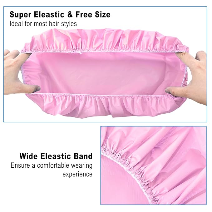 - MULTIFUNCTIONAL REUSABLE SHOWER CAPS - These hair caps for shower are widely used in bathing, showering, SPA, housework and cooking - Keep your hair dry and clean. Our waterproof bath caps for women can also be used to fix hair before cleaning face, facial care, make up etc. - Your daily essentials.