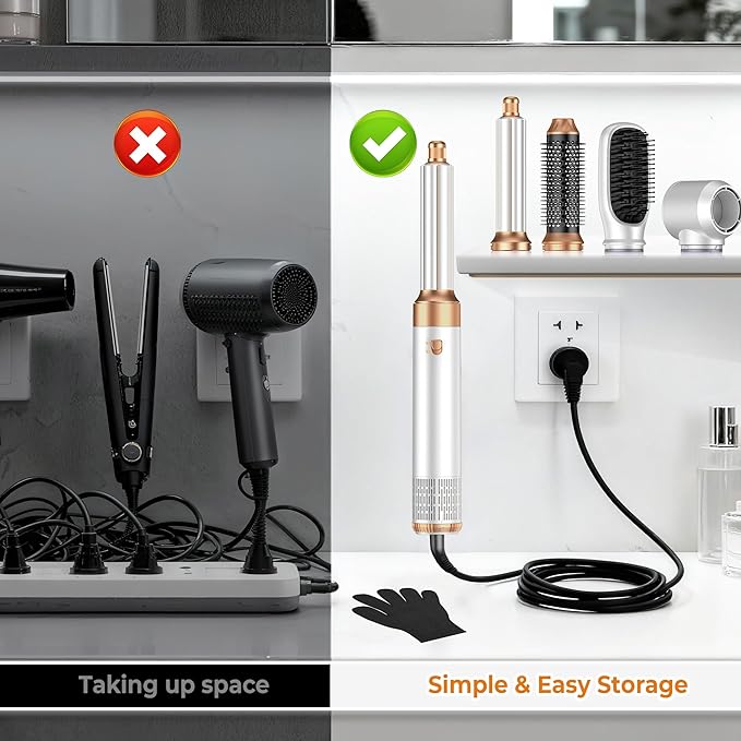 - ๐ 5-In-1 Air Styling Hair Wrap Set๏ผWith our multistyler hot air brush for crafting of stunning hairstyles, effortlessly blow dry, curl, shape, smooth, volumize, straighten,hide flyaways, and a relaxing scalp massage, all without causing any heat damage to hair, and gives you the freedom to explore styles for any hair type, making it a must-have for salon at home.๏ผTIPS: This hair dryer brush set cannot use a transformer adapter to change the voltage. Only Support 100V-120V๏ผ