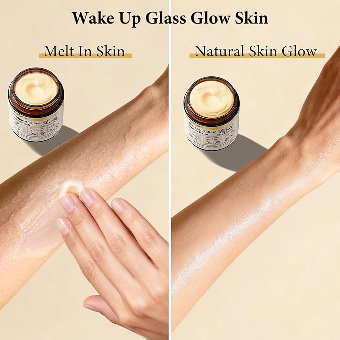 - Beef Tallow Moisturizer: Harness nature's powerful moisturizer with 100% grass fed beef tallow. Its structure is bio-identical to your skin’s natural oils, allowing deep delivery of Vitamins A, D, E, & K for truly nourished, radiant skin