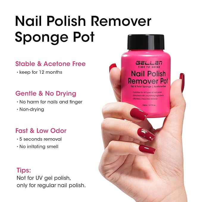 Gellen Nail Polish Remover, Dip Twist Sponge Nail Polish Remover Pot For Fingernail Toenail, Non-Acetone, Fragrance Free, 5-9s Quick Removal, Non-drying Formula Shea Butter & Vitamin E, Non-toxic