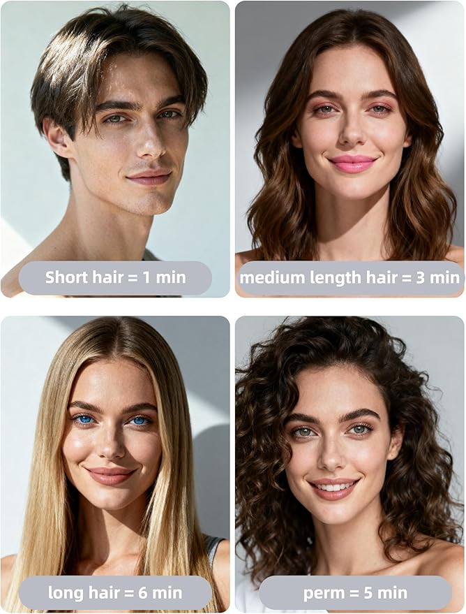 - Double Blue Light and Temperature Protection:Added double the blue light ions to help care for hair while drying it, preventing frizz.Add intelligent temperature control to maintain a constant temperature and avoid burning the hair.
