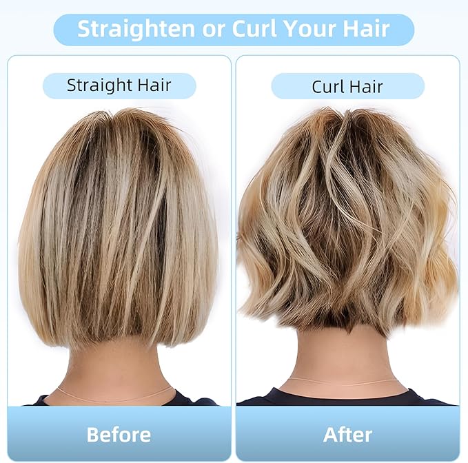 - 【Smart, Safe & Effortless Styling】 Style with confidence, anywhere. Four precise temperature settings (302-410°F) cater to all hair types, from fine to coarse. 360° anti-scald teeth protect from burns, making it safe for quick styling on the go. An 8-minute auto-shutoff provides extra safety, so you can toss it back in your bag without a second thought.