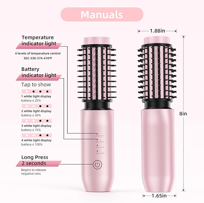 - 【Your Cordless Travel & Gym Companion】 Free yourself from outlets and tangled cords. A compact, TSA-friendly heated round brush is a new travel essential. Fully cordless with universal USB-C charging, it’s ready for a weekend getaway, international trip, or post-workout glam-up. Experience the freedom of flawless hair, anywhere.