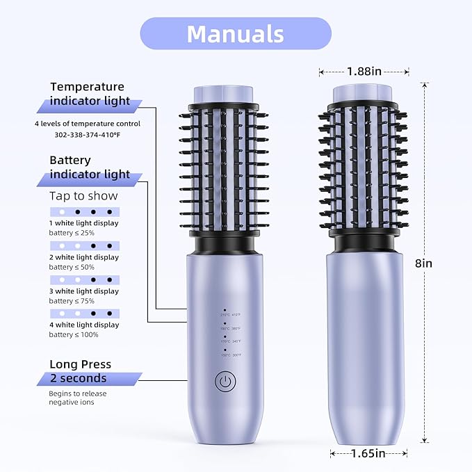 - 【Your Cordless Travel & Gym Companion】 Free yourself from outlets and tangled cords. A compact, TSA-friendly heated round brush is a new travel essential. Fully cordless with universal USB-C charging, it’s ready for a weekend getaway, international trip, or post-workout glam-up. Experience the freedom of flawless hair, anywhere.
