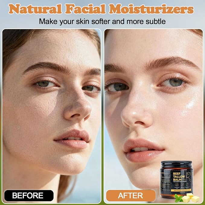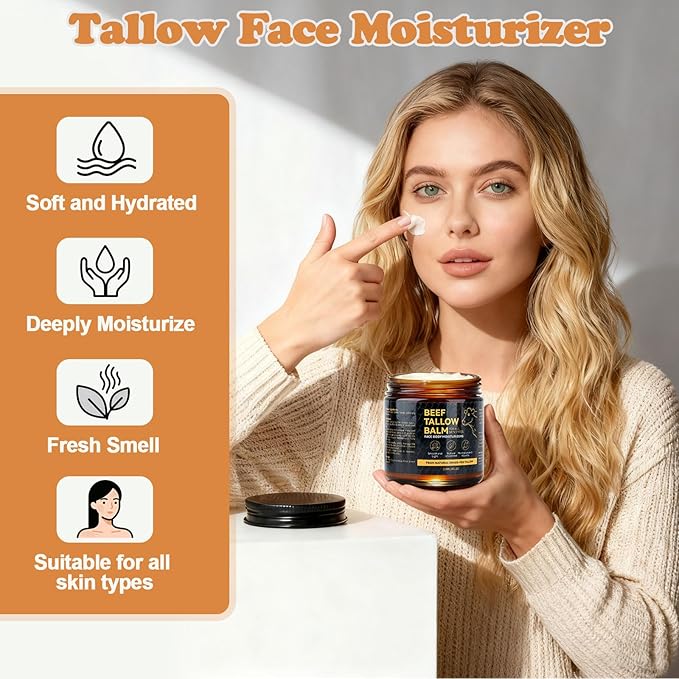 Beef Tallow for Skin, Natural Tallow Balm with Raw Honey and Beeswax for Face, Deep Nourishing Moisturizers, Grass-Fed Beef Tallow Cream for All Skin Types