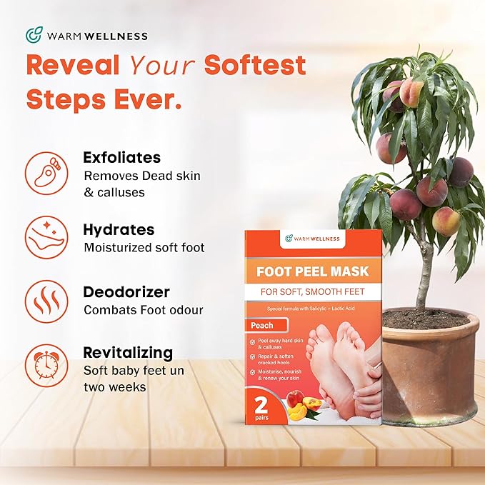 Foot Peeling Mask – Lavender Exfoliating Treatment Booties for Callus Removal & Renewal of Dry, Cracked Feet – Dermatologist-Inspired Moisturizing Spa Therapy for Men & Women (Peach 2 Pairs)