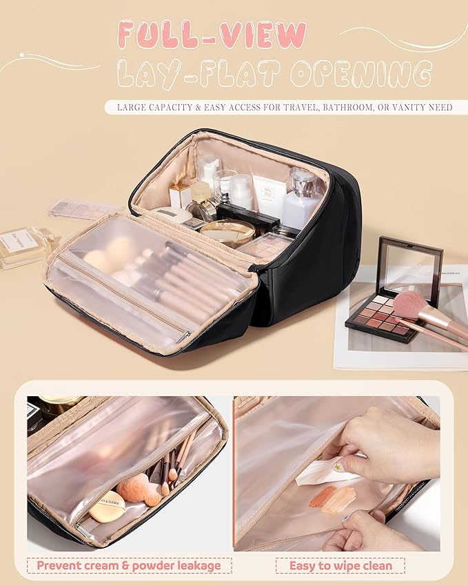 - ๐๐๐ฒ-๐ ๐ฅ๐๐ญ ๐๐ฉ๐๐ง๐ข๐ง๐ : Open the main compartment to lay flat, showcasing your cosmetics upright in perfect order. No more digging through a pile