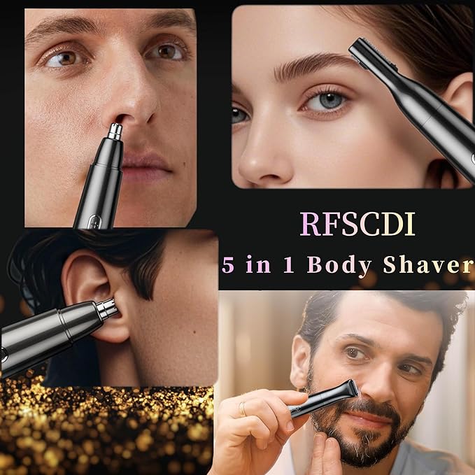 5-in-1 Rechargeable Nose & Ear Hair Trimmer - IPX7 Waterproof Dual Edge Grooming Kit for Men & Women, Perfect for Hair Removal of Nose, Eyebrows, Beard, Bikini, and Facial Hair (Black)