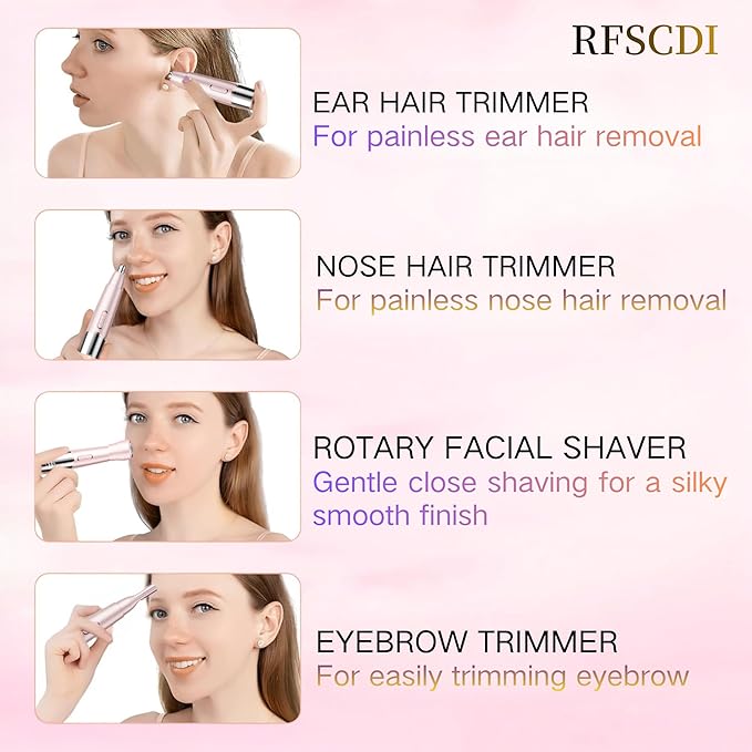 5-in-1 Rechargeable Nose & Ear Hair Trimmer - IPX7 Waterproof Dual Edge Grooming Kit for Men & Women, Perfect for Hair Removal of Nose, Eyebrows, Beard, Bikini, and Facial Hair (Pink)