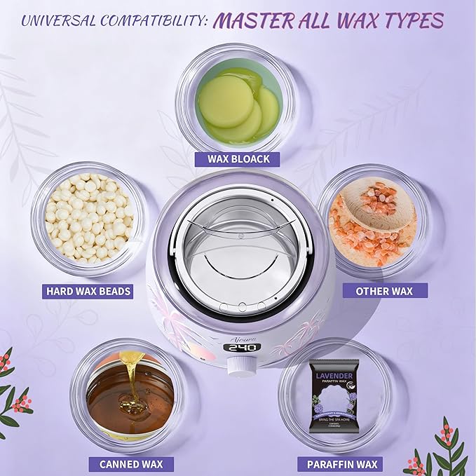 - All-Wax Compatibility & Multi-Use Design: Compatible with hard wax warmer beans, canned wax, wax blocks, paraffin wax, and other types. This wax machine kit supports full-body waxing: face, brows, arms, legs, and bikini. Great for waxing pot users who enjoy salon-grade flexibility.