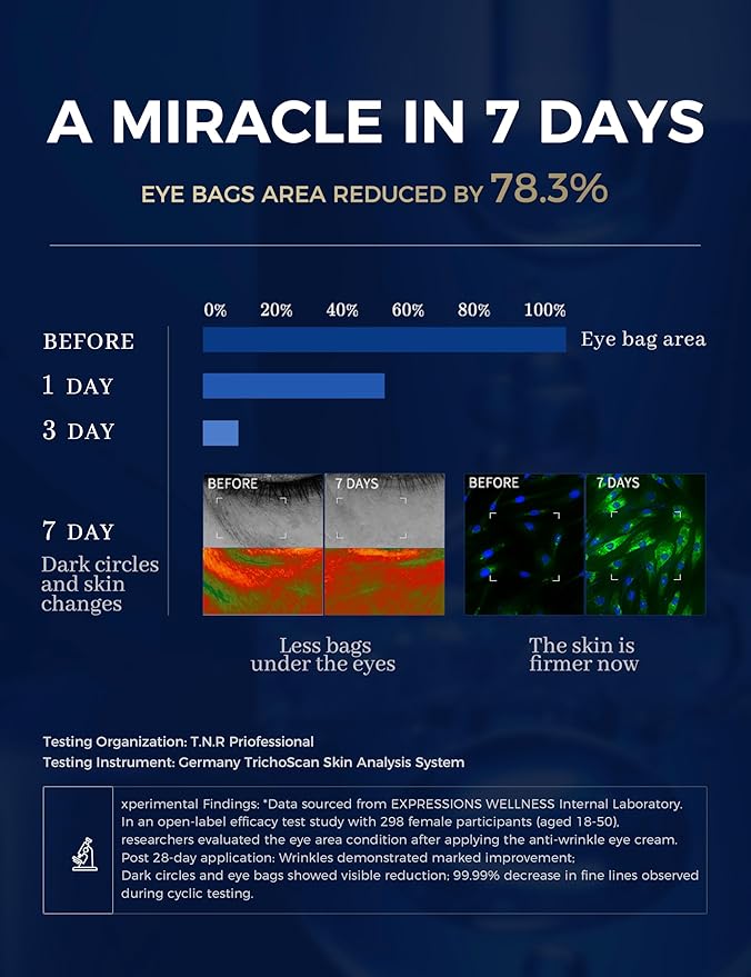 - 7-DAY VISIBLE EYE RENEWAL: See fast results with this caffeine eye cream for dark circles—improvement is visible in just 7 days. Formulated with retinol and botanical extracts, it reduces puffiness, smooths under eye bags, and minimizes fatigue lines. Lightweight and silky, this eye tightener cream for under eye bags absorbs quickly with no greasy feel, making it perfect to layer under makeup or serums.