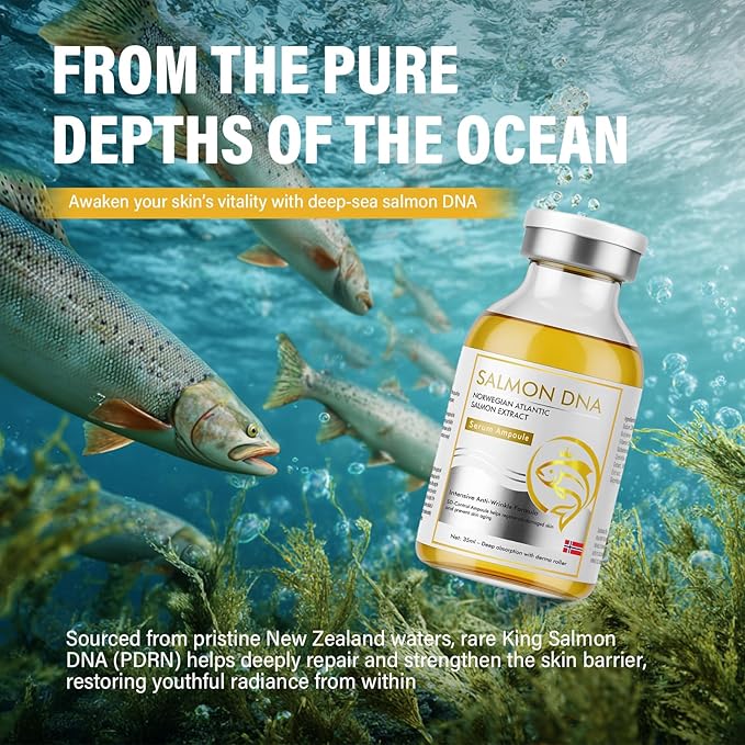 - EVEN SKIN TONE: Salmon DNA Ampoule gently brightens dull skin, fades dark spots, improves skin texture, and reveals an even, radiant glow