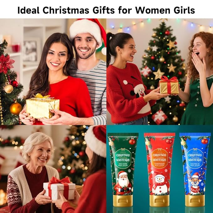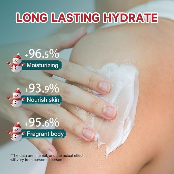 - Body Moisturizer For All Skin Types:Fruit plant extracts deliver non-greasy, quick-absorbing moisture that lasts. Specially formulated for dry,cracked, dehydrated,or dull skin, this deeply hydrating Christmas body care lotion leaves body silky-smooth and rejuvenated, keeping you and your family comfortably moisturized a whole day