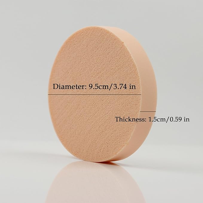 - XL Size for Lightning-Fast Application–50PCS 9.5cm diameter puff covers 200% more area than standard 5.5cm puffs. The extra-thick 1.5cm design ensures rapid, even coverage—perfect for busy mornings and on-the-go touch-ups! (Diameter: 9.5cm/3.74 in, thickness: 1.5cm/0.59 in)