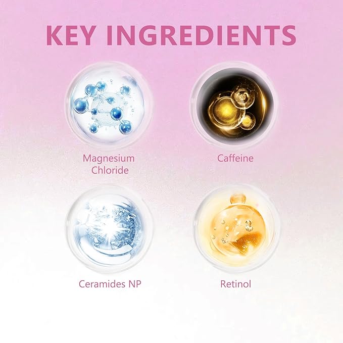 - Powerful Anti-Aging Formula:Enriched with Retinol to reduce fine lines, Caffeine to revitalize, Ceramides to lock in moisture, and Magnesium Chloride for skin health. Targets wrinkles deeply for visible results.
