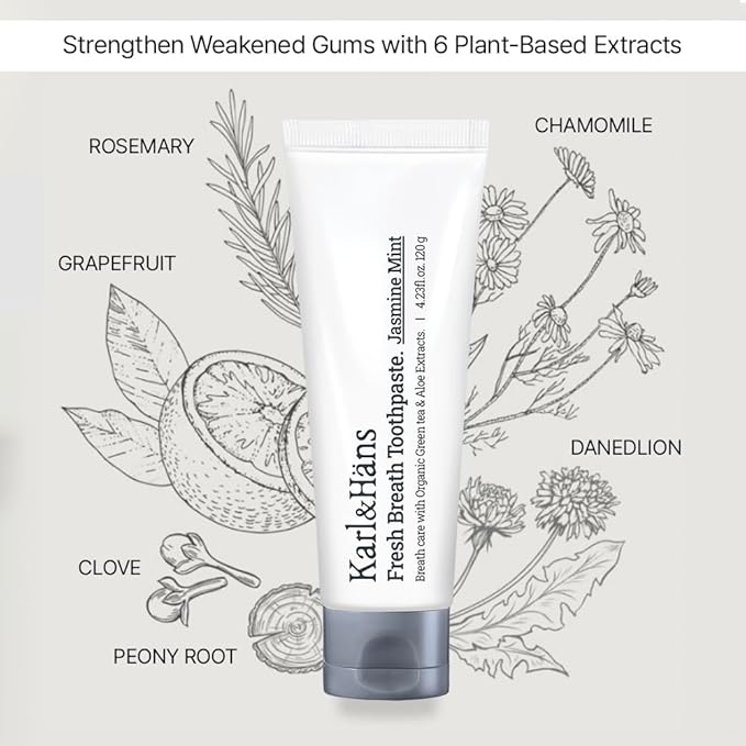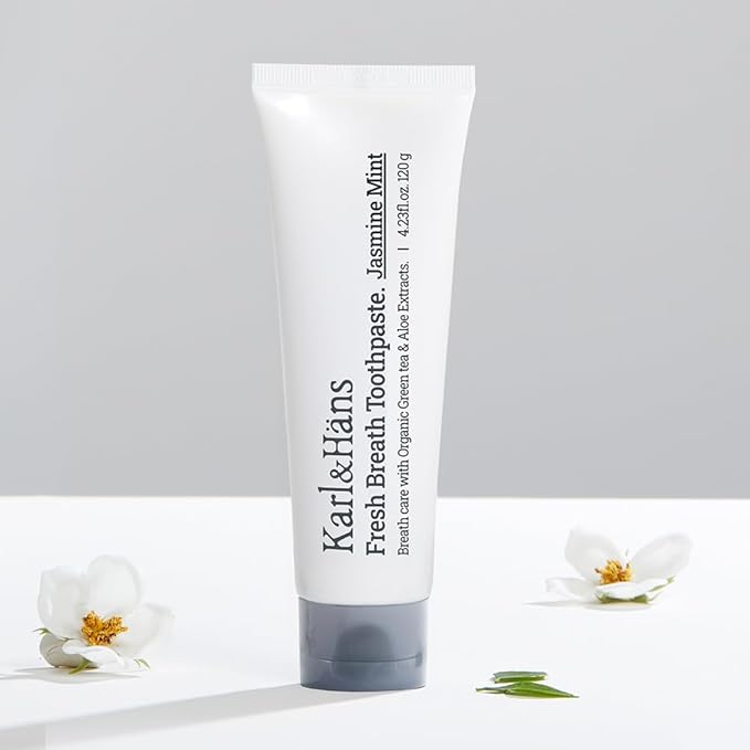 Karl&Hans Fresh Breath Jasmine Mint Toothpaste with Fluoride – Bad Breath Removal, Cooling Jasmine Mint Freshness, Cavity Protection, Whitening & Stain Removal, 4.23 fl oz