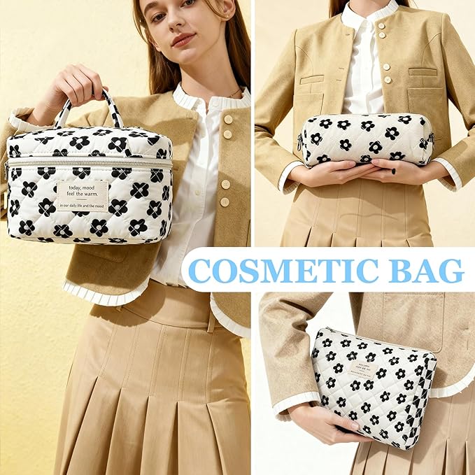 - ✅【 Multi Purpose】The cotton quilted makeup bag can be used as daily handbags, cosmetics and skincare organizing bags, storage bags, and travel toiletry bags. The initial makeup storage bag can be used during travel because it is lightweight and does not take up too much space in the suitcase.