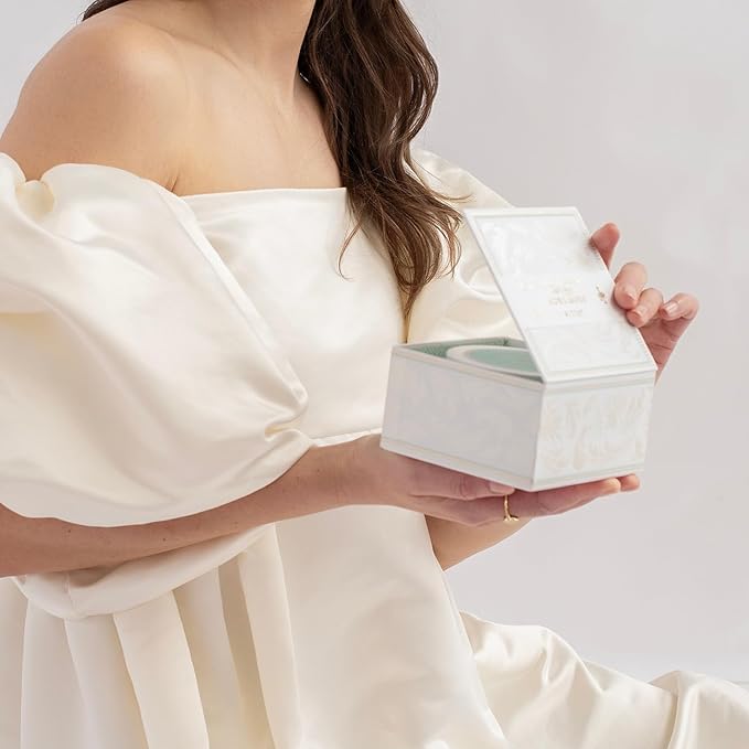 - Elegant Packaging Design: Etched frost glistening with golden accents circles this distinctive hinge-top box. Inside, a timeless glass jar with twist-off lid awaits, set against a sophisticated mint and gold backdrop