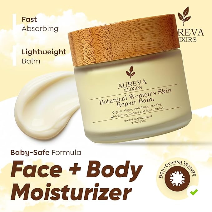 Botanical Woman’s Skin Balm – Cleansing Balm Moisturizer – Makeup Remover for Face, Body, Neck & Décolleté Drynes – Saffron, Ginseng, Rose Infusion