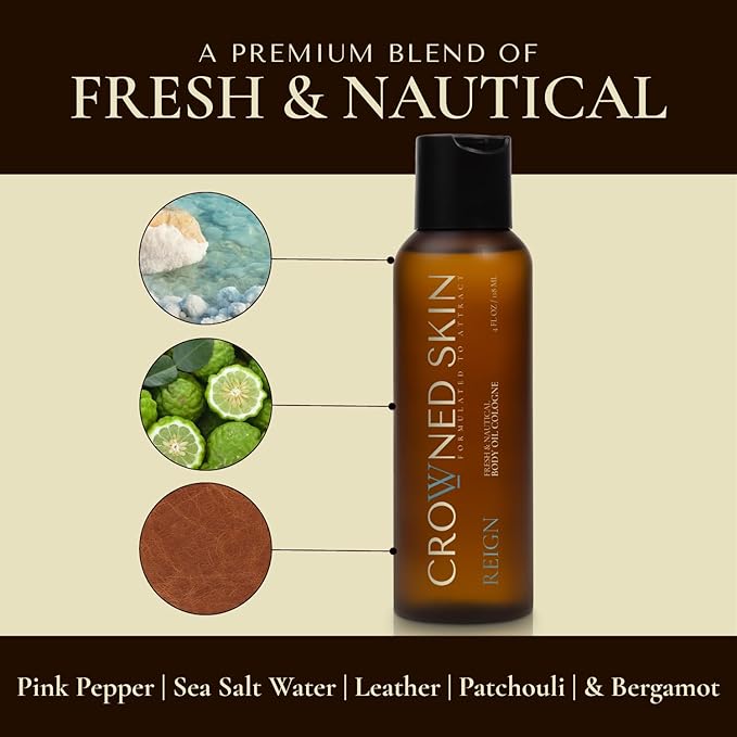 - New Daily Moisturizer for Men: The new formulas for Crowned Skin King and Reign body oil cologne bundle is designed for daily use and works instantly to nourish and hydrate your skin. These premium, naturally fragranced, and nourishing skin care products provide excellent skincare while boosting your confidence, helping you to feel more attractive.