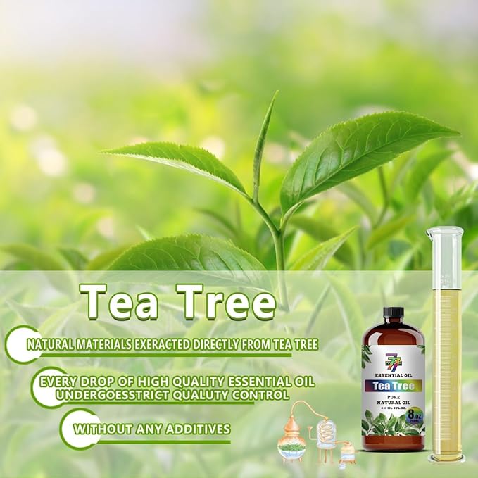 - PACKAGING: GV77ZF Tea Tree Essential Oil is packaged in an extra-large 8 oz (240 ml) amber glass bottle that blocks UV rays and prevents essential oils from deteriorating under UV exposure. This affordable, oversized bottle features a double sealed closureclosure
