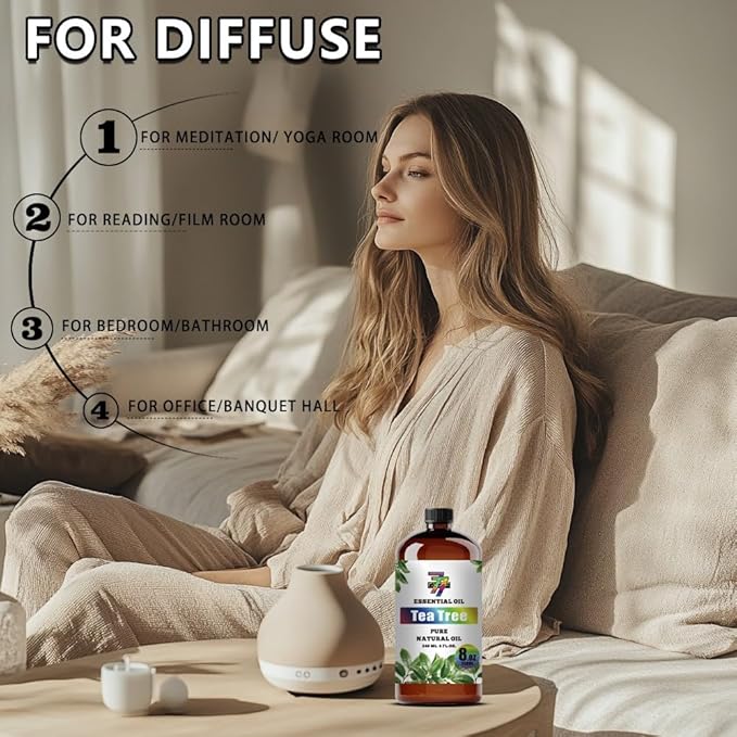 - METHOD AND USE RANGE:Mix Tea Tree Essential Oil with water (recommended ratio is 1:10) and add a few drops into an aroma diffuser to create a relaxing and pleasant atmosphere; it can also be used to make candles, soaps, lotions, and homemade cleaning products; Other Applications: humidifiers, aroma diffusers, home spa treatments, cleaning products, massages, yoga, and automotive diffusers