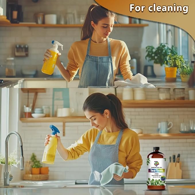 - PACKAGING: GV77ZF Tea Tree Essential Oil comes in an extra-large 16-ounce (480 ml) amber glass bottle. This economical, high-capacity bottle features a double-sealed cap